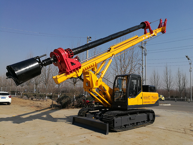 3.加压钻进时需设备前方提供下压力,因此多数旋挖机都是重心在前,同时处于桅杆的高度,造成重心易于转移,因此应尽可能降低钻杆的悬挂高度。